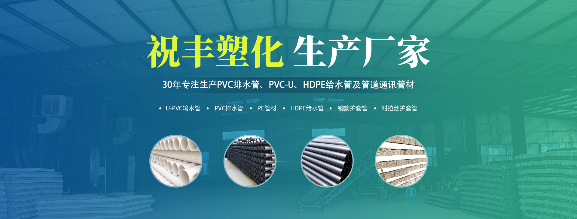 安陽市祝豐塑化有限公司坐落在滑縣工業(yè)園區(qū),東臨大廣高速,西臨京珠高速,是鄭州、鶴壁、安陽、濮陽四個城市的輸紐,交通便利、環(huán)境優(yōu)美。 公司始建于八十年代,經(jīng)過二十余年的艱辛創(chuàng)業(yè),規(guī)模不斷壯大,由十多萬元資產(chǎn)的小廠,發(fā)展到現(xiàn)占地面積達(dá)一萬多平,建筑面積一萬平,資產(chǎn)2000多萬元管材生產(chǎn)企業(yè)。公司生產(chǎn)PVC-U、PVC排水管、HDPE給水管、鋼筋護(hù)套管管道通訊管材等產(chǎn)品,廣泛用于農(nóng)田節(jié)水、高山引水、人畜用水、建筑、電力通訊等多種用途,品種齊全。為了滿足用戶需求,可承攬各種給水、節(jié)水、灌溉工程?!白XS塑化”憑借強(qiáng)勁的實力,優(yōu)良的管理水平?!耙再|(zhì)量求生存,以信譽(yù)求發(fā)展”的原則全力以赴和大家共同塑造美好未來。..